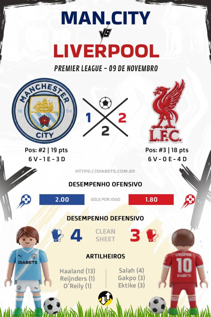 - Em 23/02/2025, apesar de ter 66% de posse de bola, o City não converteu e o Liverpool venceu 2-0 — mostra que estatísticas de domínio nem sempre se traduzem em vitória.