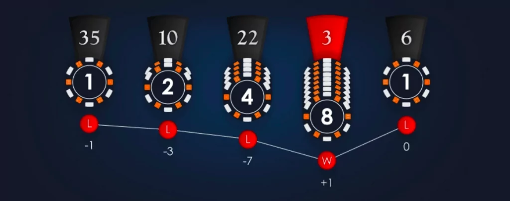 - Aposta e Resultado: A aposta é realizada. Se for vencedora, o ciclo do Martingale é concluído com sucesso, e o apostador retorna à aposta inicial para um novo ciclo. O lucro obtido é o valor da aposta inicial.